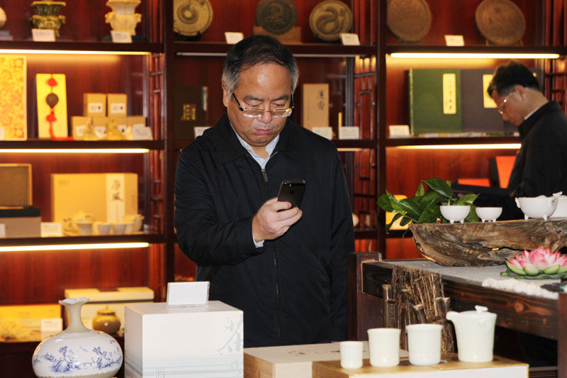 客人们称赞陶源茗产品的创意,询问公司的发展状况并在展台前拍照纪念。